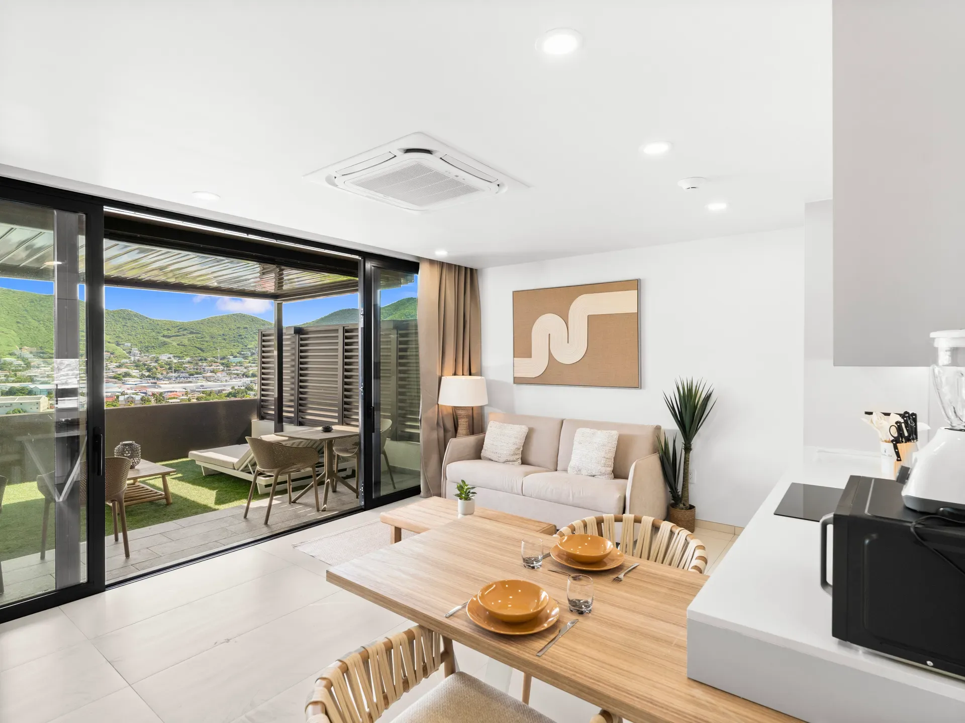 Alliant design contemporain, confort optimal et terrasse agréable, l’Appartement C301 avec vue sur lagon est le choix parfait pour couples ou voyageurs recherchant un séjour paisible et élégant à Sint Maarten.