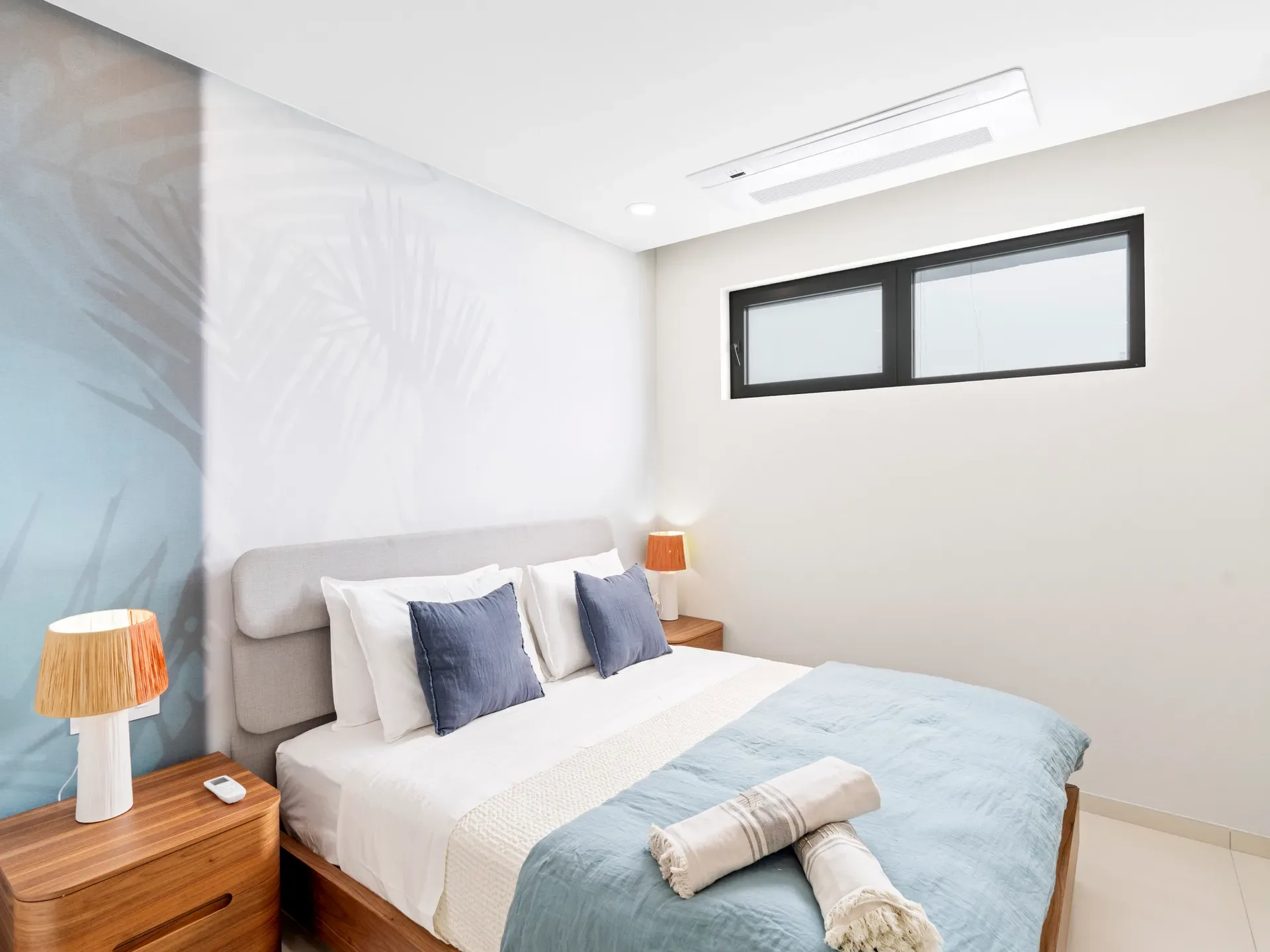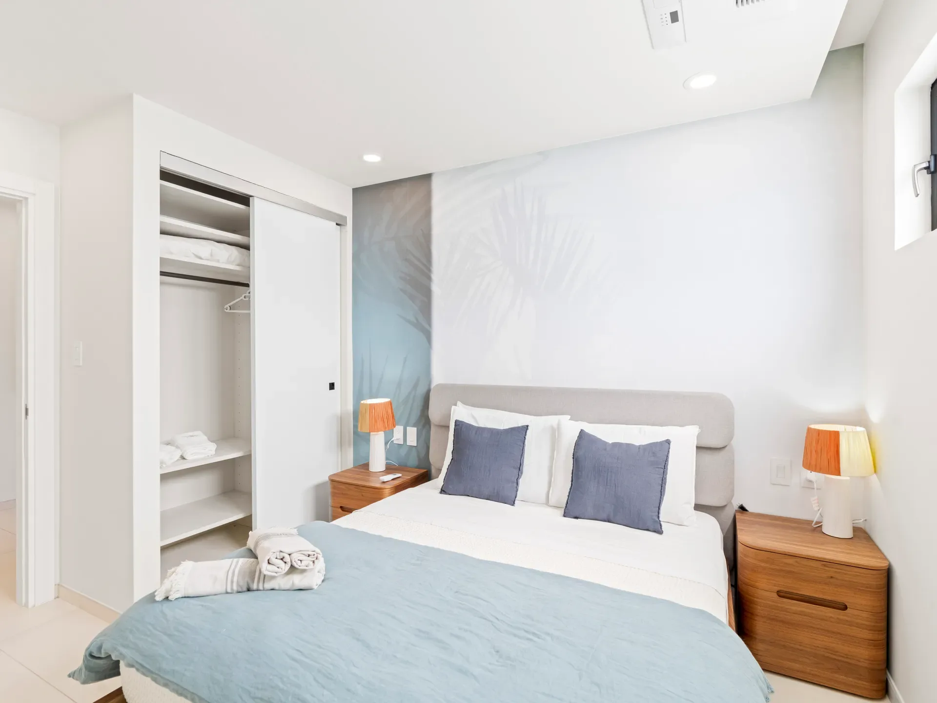 The second bedroom is equally stylish and inviting, perfect for family or guests.