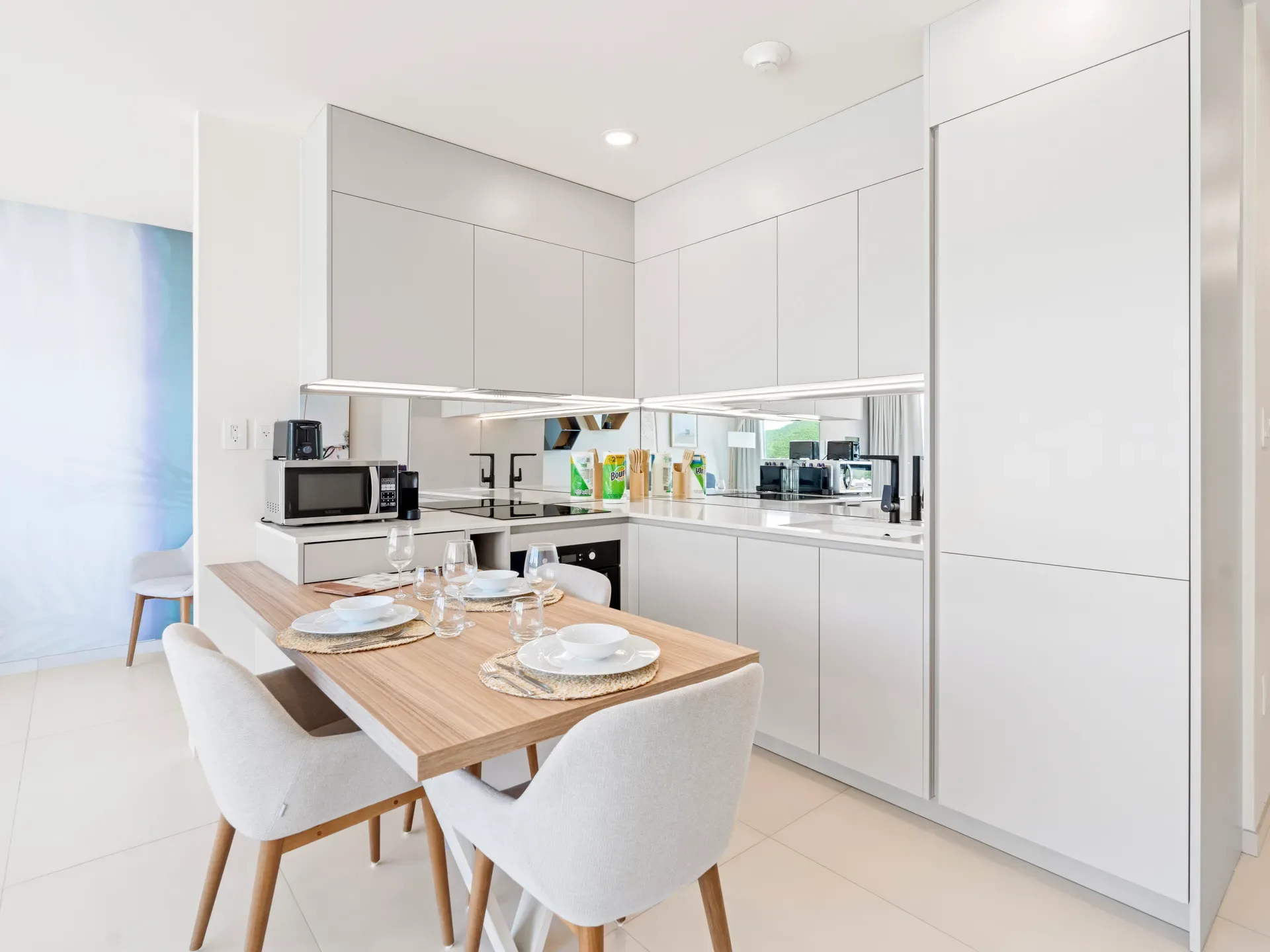 The modern, fully-equipped kitchen invites you to prepare delicious meals that you can savor while facing the splendid Simpson Bay lagoon.