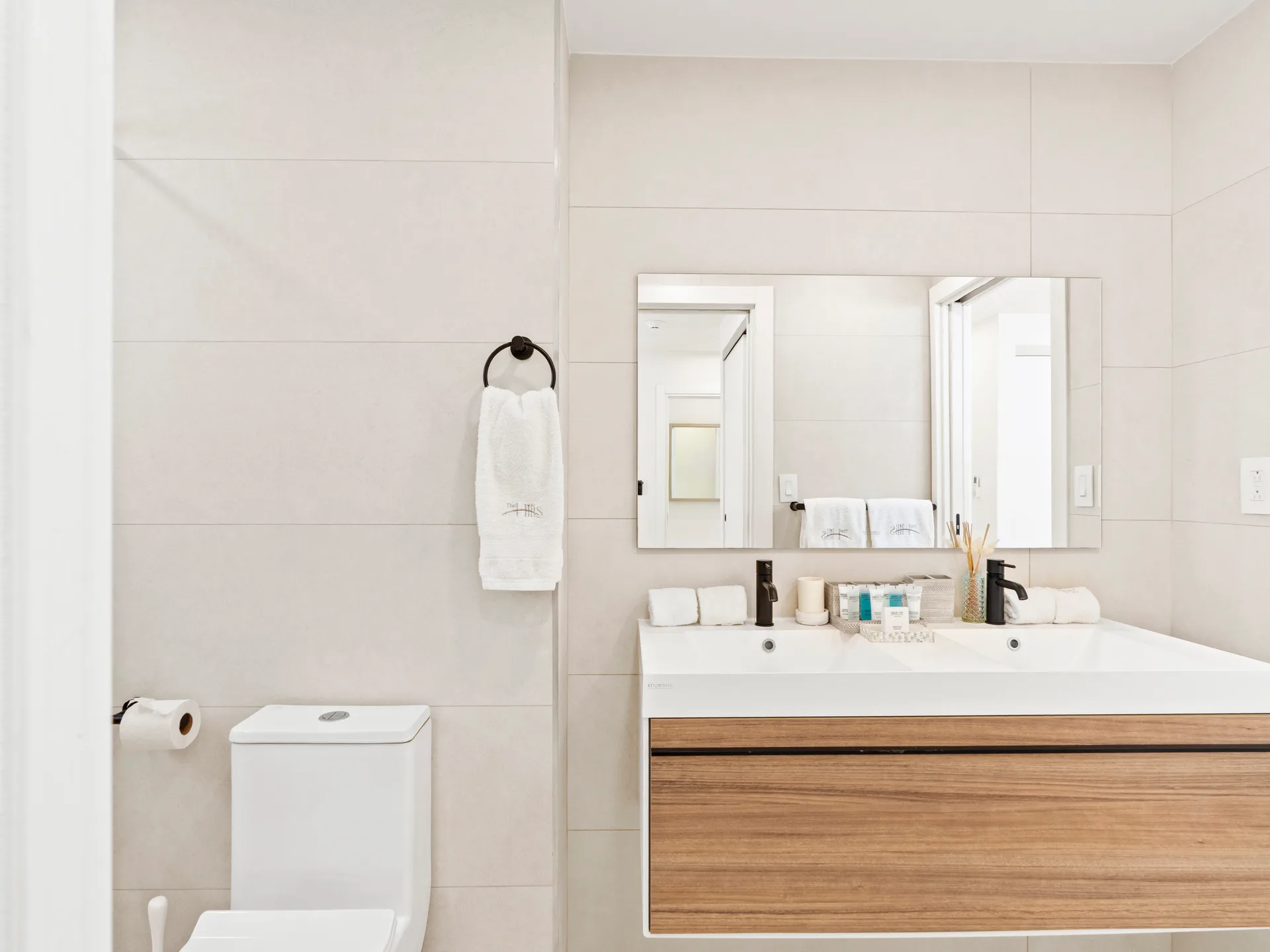 Two full bathrooms with modern fixtures. The en-suite bathroom includes a single vanity and luxurious rain shower for a spa-like retreat.