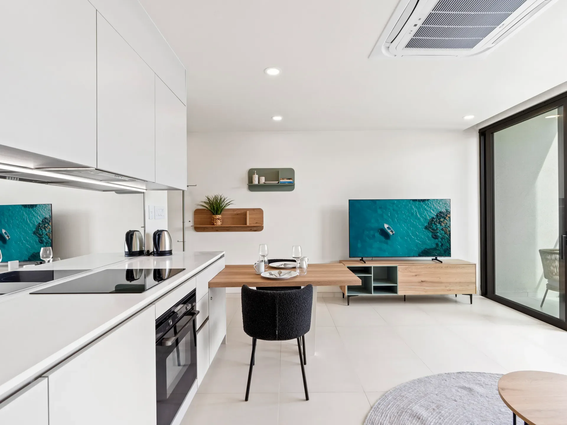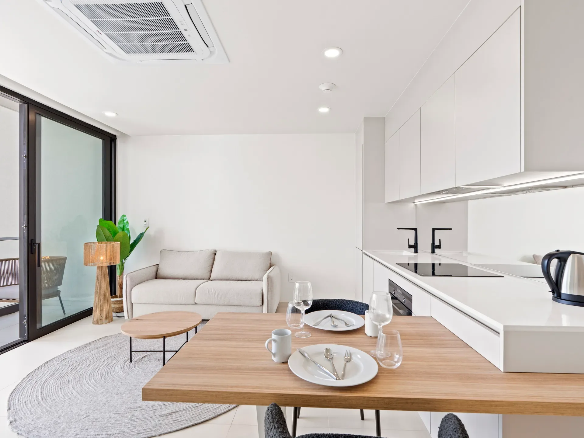 Bright living area filled with natural light, perfect for dining, relaxing, or planning your next exploration