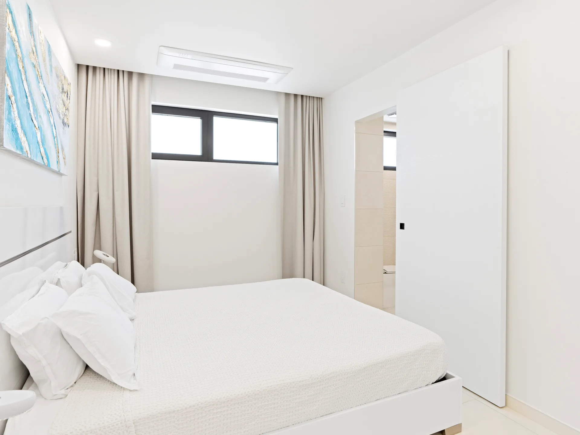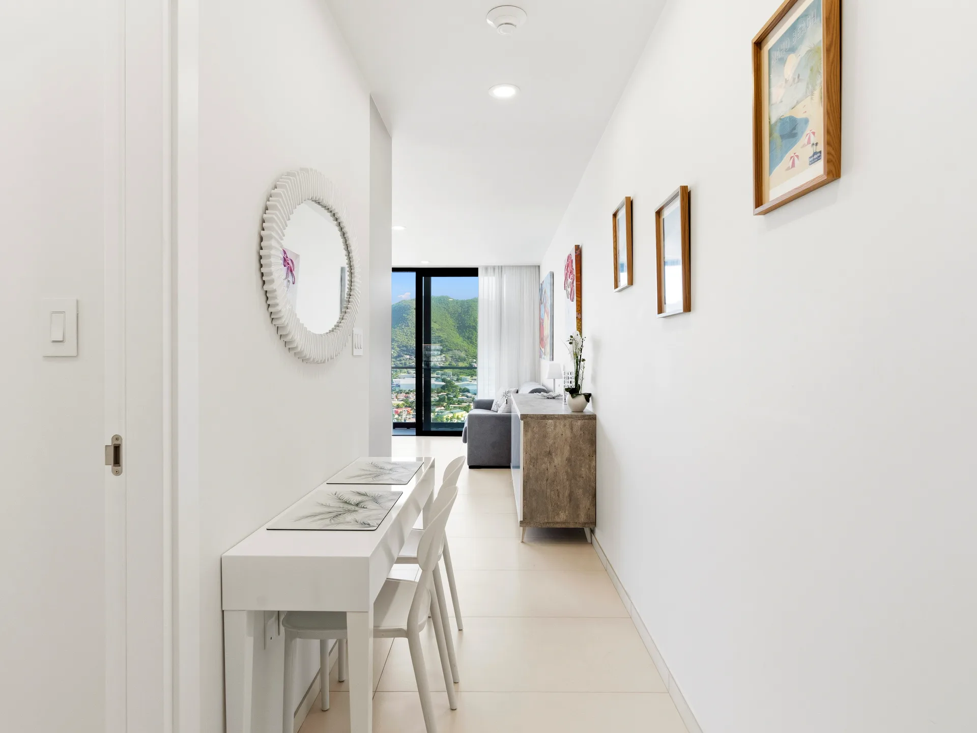 Spacious, sunlit living room opening onto a private balcony